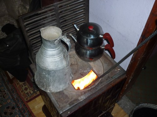 Between Karasu and Eregli we were delighted to have a stretch of smooth flat road, much more like we’d imagined the coastal highway would be like from our limited research (we now think (hope!) it starts after Samsum in 300km). The mountain roads reappeared too soon and as we cycled along an exposed cliff top road out of Zongaldak with ferocious winds and even more rain we were fighting for every revolution of the wheels. The thought of getting round the next corner was horrific, let alone NZ! On tough days like these it’s priceless to be rescued for some precious minutes by friendly villagers, who toast us dry by the blazing wood burning stoves that are the centre piece in every tea house.