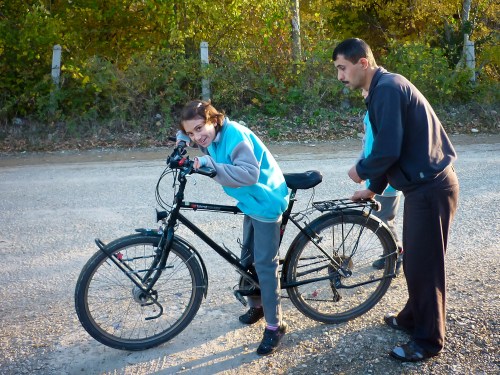 We’d stopped for a quick lunch of water and bread by the local mosque when Muhammed, the village priest, saw us and invited us back to his house for a much tastier lunch. The dinner table was rolled out and loaded with a delicious feast – Muhammed wouldn’t take no for an answer and kept refilling our plates until we could take no more. Cycling onwards with bulging bellies wasn’t an option so we chatted using the invaluable Google Translate, watched Muhammed’s children ride Bex’s bike, and before we knew it we were eating dinner and preparing to stay the night.