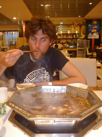 So technically we are on the home straight – and Ryan promises it is downhill all the way to NZ. We had a celebratory night out on our arrival in Lanzhou and went to a fancy restaurant. It is always hideous trying to order food, but on this night we found ourselves in a Mongolian hot-pot restaurant where pointing at sweet and sour pork in the phrase book wouldn’t suffice and we displayed an exceptional level of incompetence as a result. An expanding number of Chinese people talking loudly at us resulted in our table being laid with a cauldron of boiling oil laced with wild mushrooms and bowls of unknown meats and miscellaneous ingredients orbiting around it. A kind waitress seeing our bewilderment helped us to eat piece by piece and prepared our next mouthful in the oil with chopsticks and loaded up our little bowls. The other customers who were all capable of eating their meals without assistance continued to stare at the Aliens (official word for foreigners, seen on signs in hotels) for the rest of this performance until, finally, we were declared competent to feed ourselves and the waitress took a step back and supervised the remainder of our meal from a distance. Not quite the romantic dinner I had in mind…