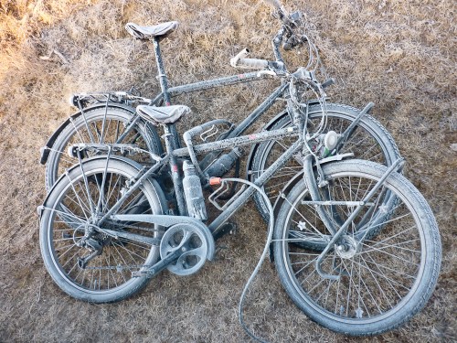 After battling the elements for a miserable 15 miles, a truckers’ cafe appeared from nowhere, so we ditched the bikes and dived inside. We huddled inside that cafe all day, feeling sorry for ourselves as the wind buffeted the corrugated iron building. The walls shook and the roof creaked as a nearby weather station recorded wind speeds of up to 97kph! We got worried as the cafe owner kept glancing nervously at his roof, which started to come away from the walls. The wind sent gusts of grit and dust past the window at incredible speed – I’ve never seen or felt anything like it before. Tables and chairs were pushed against the walls to stop them collapsing and all we could do was sit and wait. Cycling onwards or camping outdoors was obviously a recipe for doom, few trucks were still driving in the wind, and the forecast for the following day was for more strong winds. We considered our options over another plate of greasy noodles: