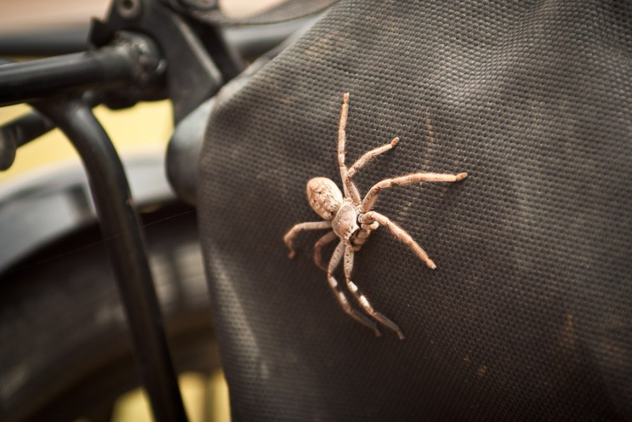 This Huntsman spider slept under my bike seat, and when I lifted my bike the next morning it ran out and I nearly had a heart attack!