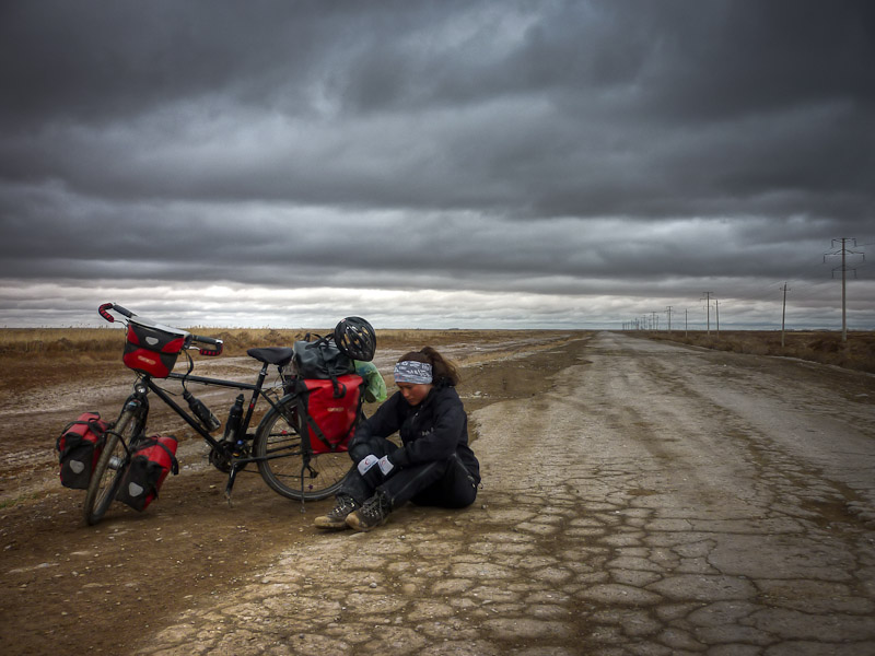 We were reduced to a soul-destroying 10kph average speed, and had to spend every daylight hour on the bikes. The poorly sealed road stretched to the horizon under grey skies, surrounded by vast, empty landscapes. We eventually made it after turning the pedals for 10 hours for three days back-to-back, and a couple of tantrums along the way!