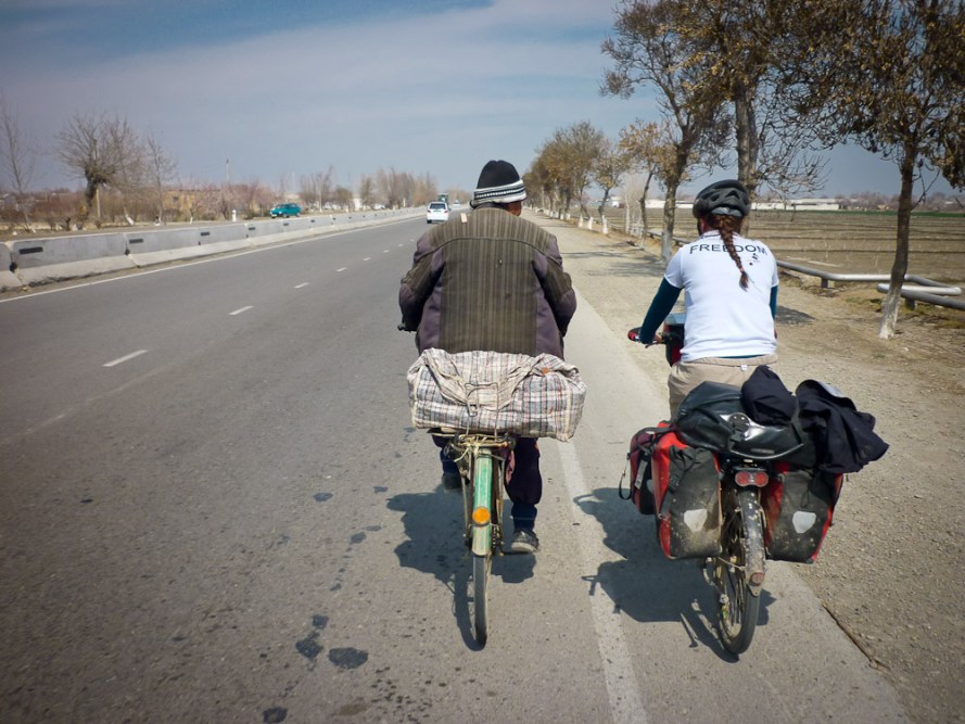 Bex chats to a local guy cycling home